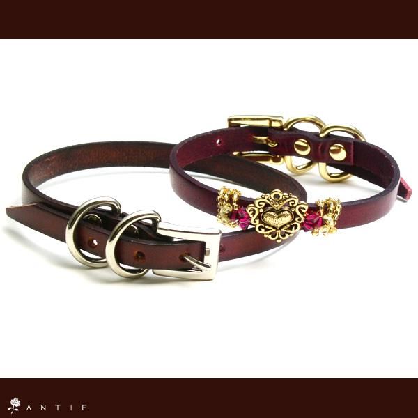 輝きのスワロフスキービーズと、かわいいハートを使用したハンドメイド作品です。ゴールド色の金具はワインレッドのイタリアンレザーにしっくりときた、アンティークな雰囲気のある仕上がりです。